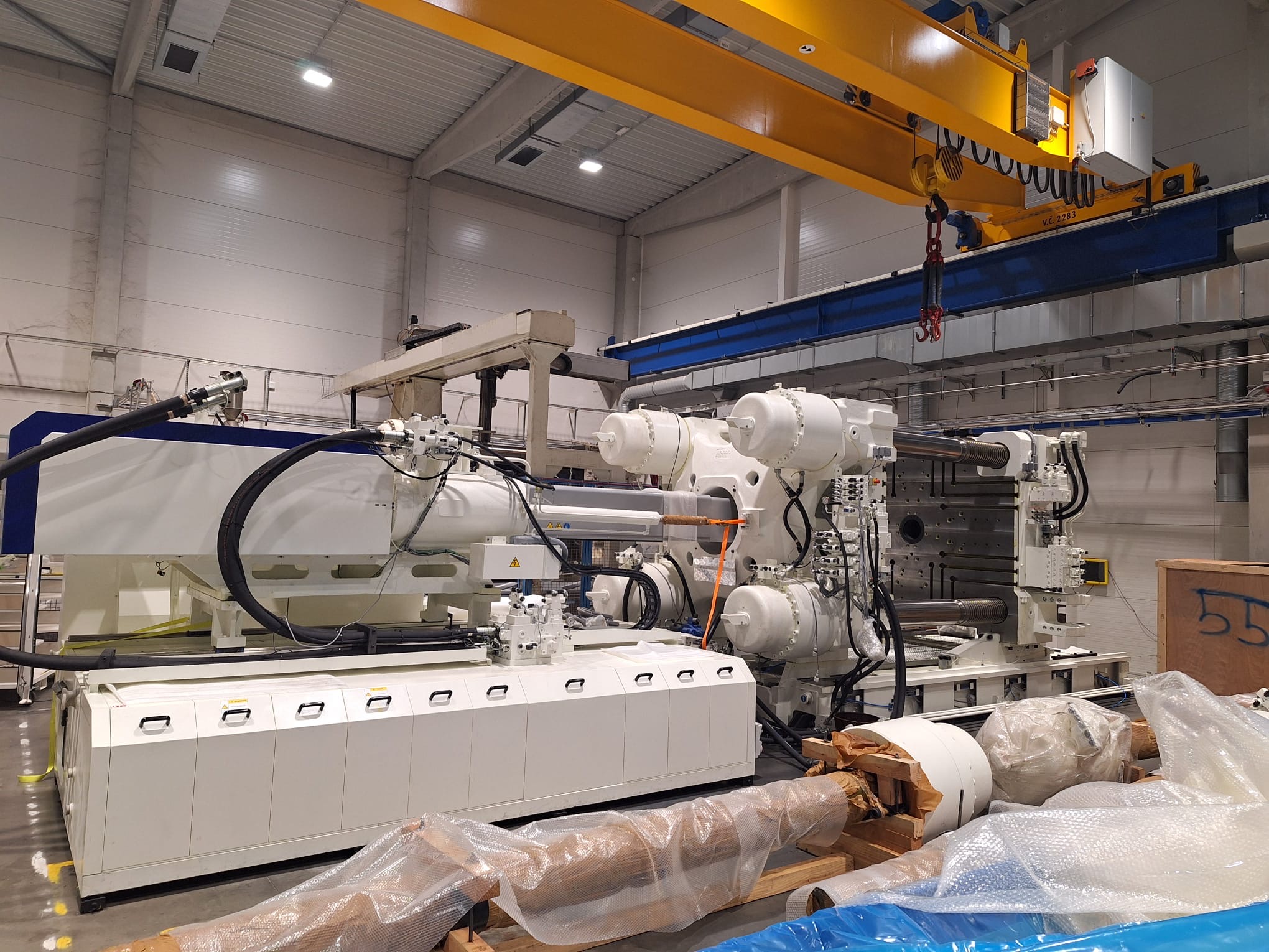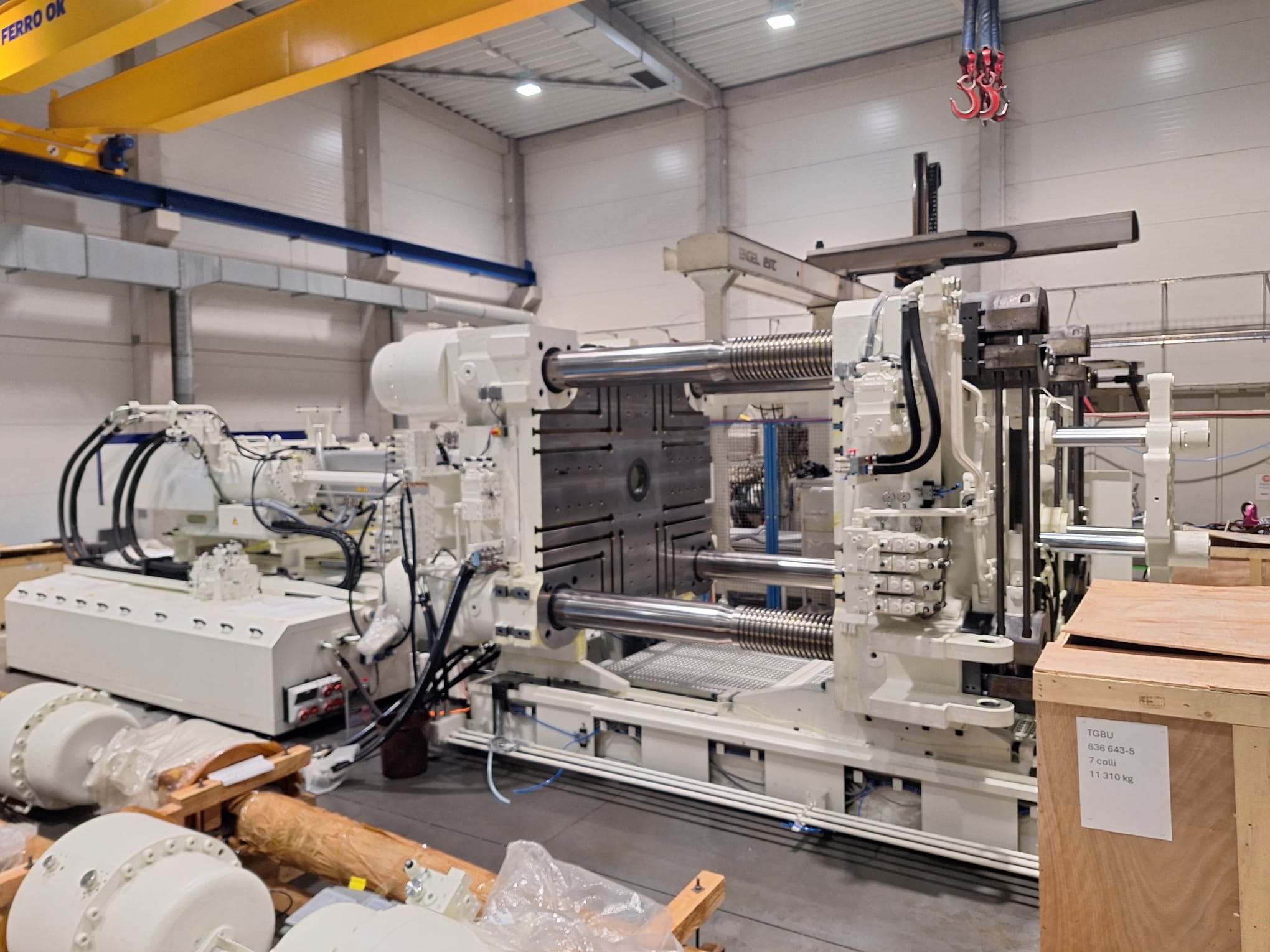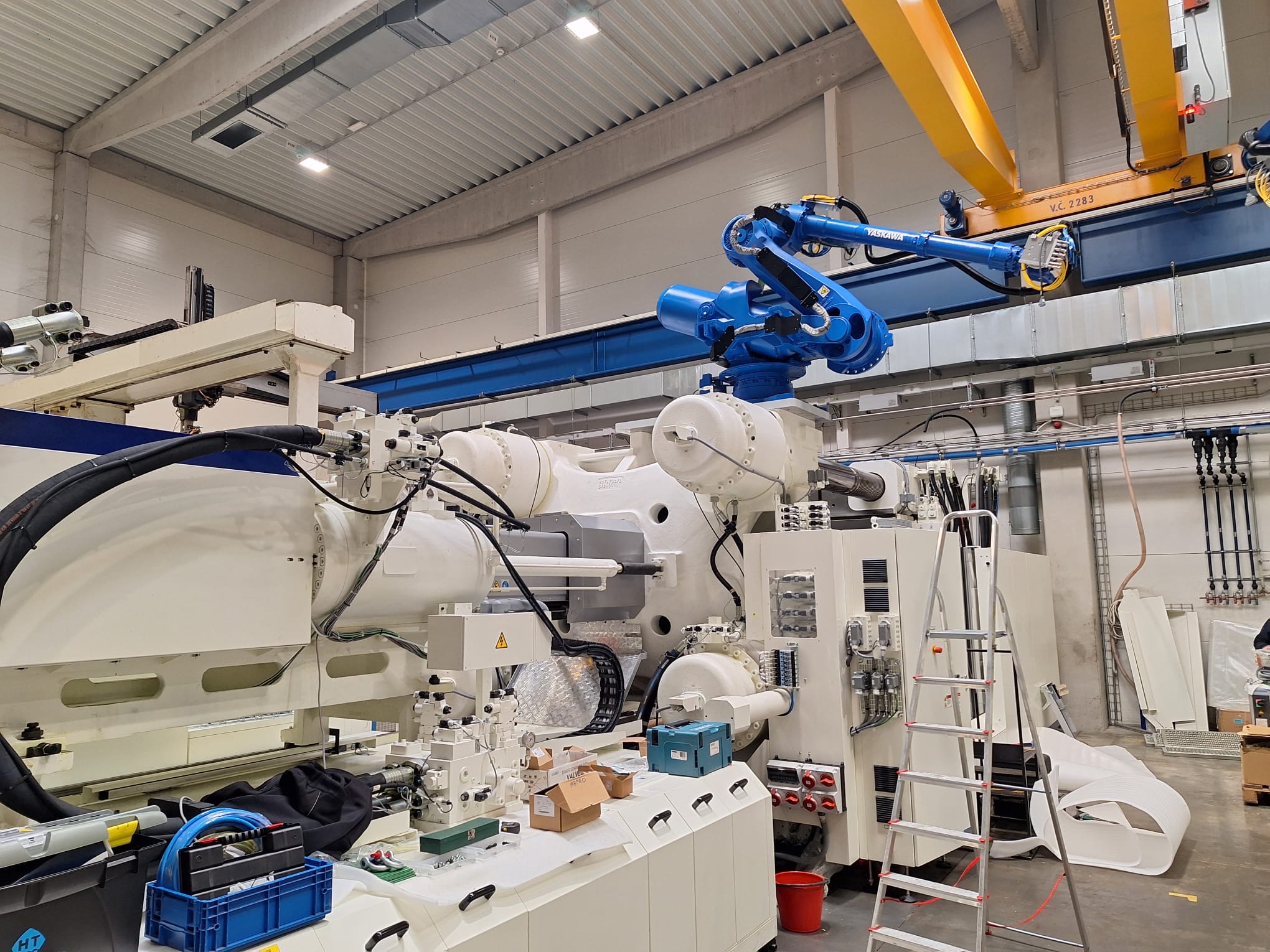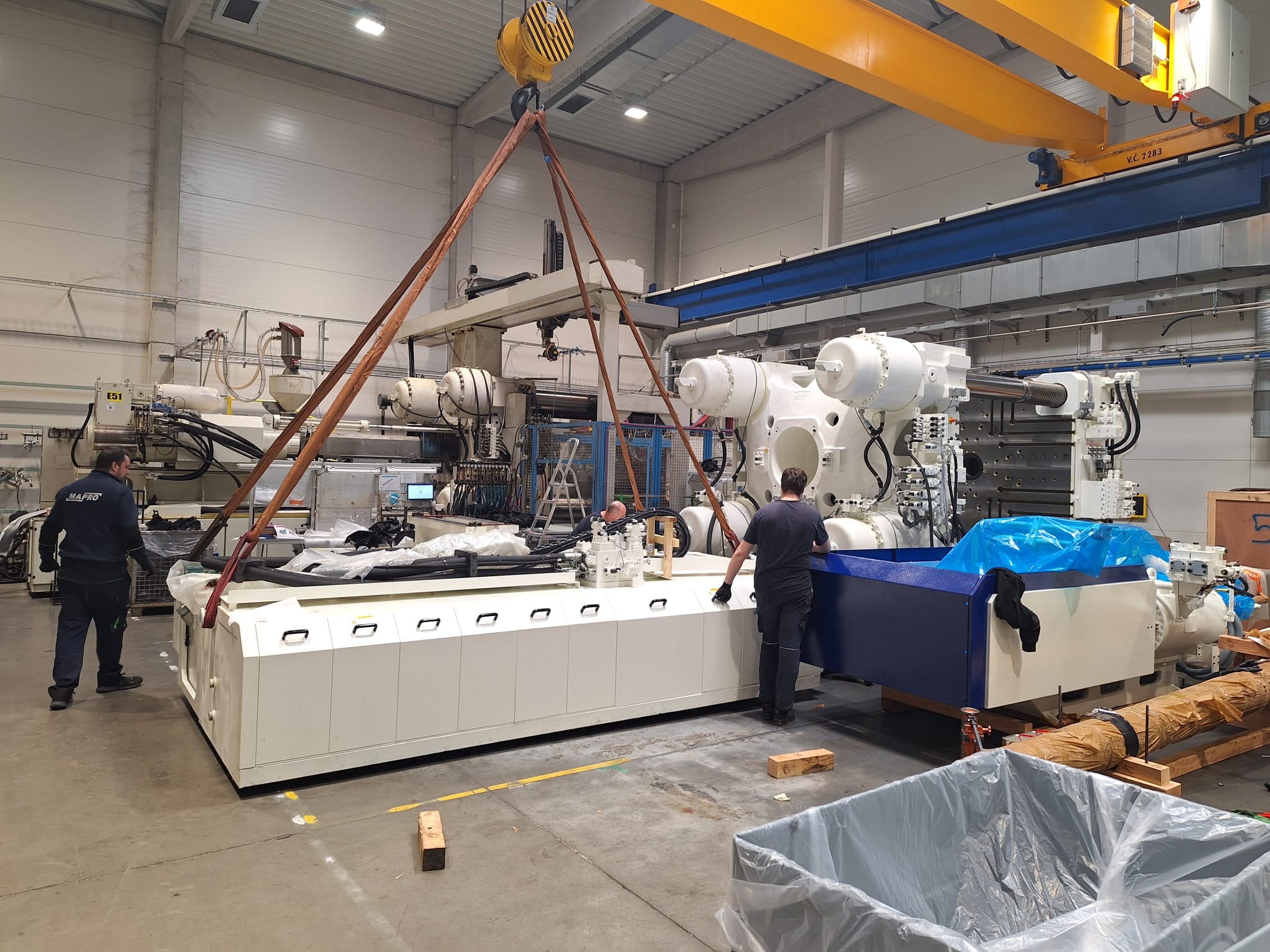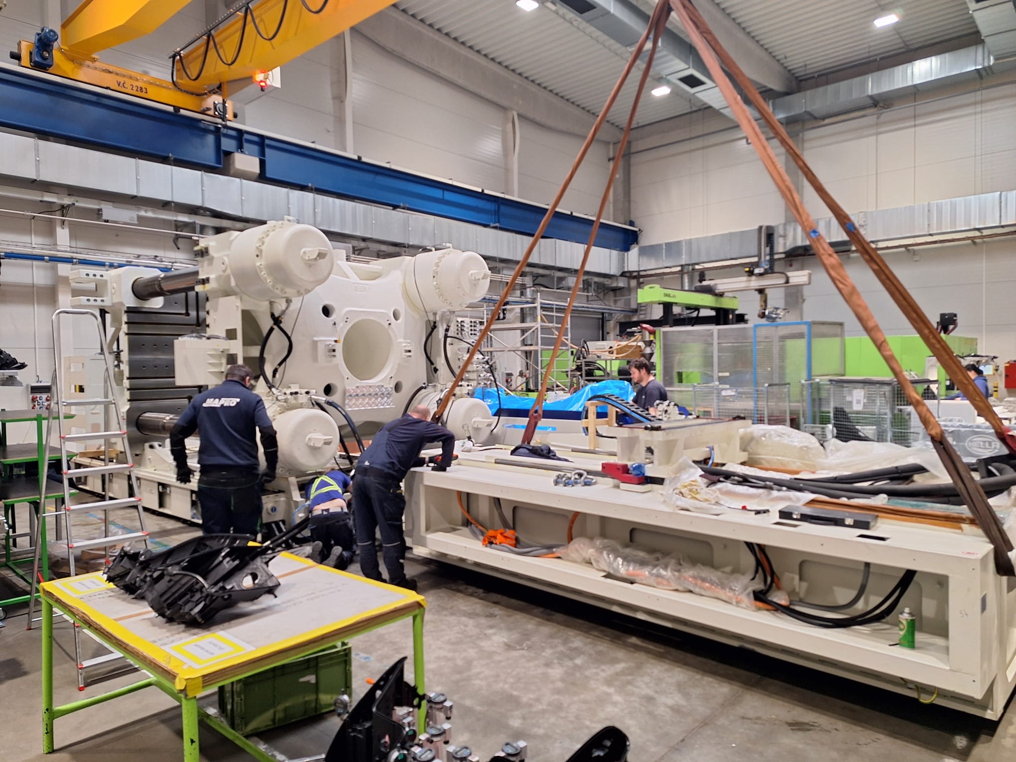 Ve společnosti PF Plasty probíhá důležitá fáze instalace nových strojů. Celý proces začal 27. ledna 2025, kdy postupně dorazily kontejnery s díly pro montáž. Pokud vše půjde podle plánu, výroba by mohla lisy převzít do plného provozu ke konci března. Harmonogram je však stále flexibilní – klíčové bude tempo oživování a montáže pětiosých robotů Yaskawa, které jsou momentálně u našeho dodavatele Mapro.