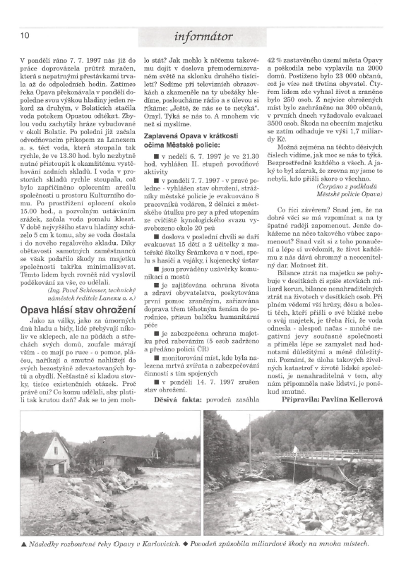Pavel Schiesser, technický ředitel Lanexu: „V pondělí po poledni již začala odvodňovacím příkopem za Lanexem téct voda, která stoupala tak rychle, že ve 13.30 hod. bylo nezbytně nutné přistoupit k okamžitému vystěhování skladů… V době nejvyššího stavu hladiny scházelo 5 cm k tomu, aby se voda dostala i do nového regálového skladu. Díky obětavosti samotných zaměstnanců se však podařilo škody na majetku takřka minimalizovat...“