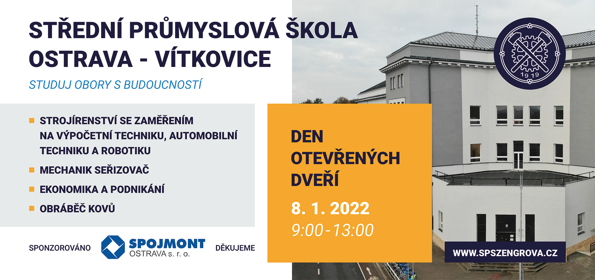 Střední průmyslová škola z Ostravy-Vítkovic, důvěrně zvaná Zengrovka, pořádá v sobotu 8. ledna den otevřených dveří pro své potenciální studenty a jejich rodiče. Významným partnerem školy je společnost Spojmont Ostrava, kam studenti chodí na praxi.